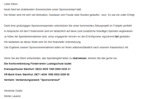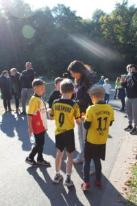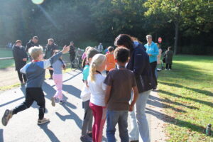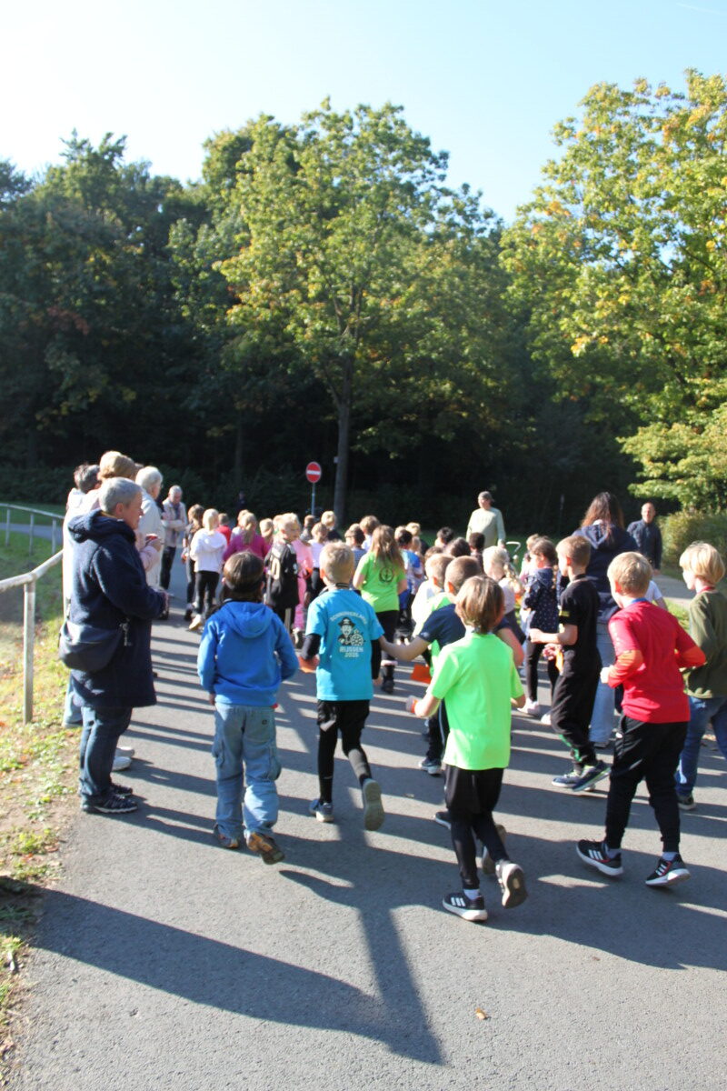Auf dem angrenzende Sport- und Waldgelände liefen die Kinder mit dem Ziel, möglichst viele Runden zu bewältigen. Jede gelaufene Runde wird mit einem freiwilligen Betrag eines Erwachsenen gesponsert. Angefeuert von zahlreichen Zuschauern liefen die Kinder mit großer Ausdauer zu tollen Ergebnissen. Eine gelungene Aktion, die allen Beteiligten viel Freude bereitete. Wir alle dürfen gespannt sein, wie das Spendenergebnis ausfallen wird. Ein besonderer Dank geht an das Planungsteam Frau Arndt und Frau Pohlmann.