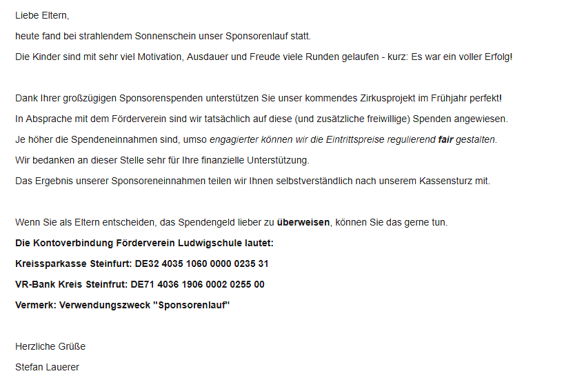 Alle vier Jahre plant die Ludwigschule ein Zirkusprojekt, an dem für eine Woche das gesamte Schulleben rund um das Thema Zirkus organisiert ist. Zur Absicherung der Finanzierung und zur Förderung der Schul(sport)gemeinschaft fand am 02. Oktober 2025 bei kühlem, aber sonnigem Herbstwetter der Sponsorenlauf „Fit für den Zirkus“ statt.