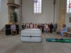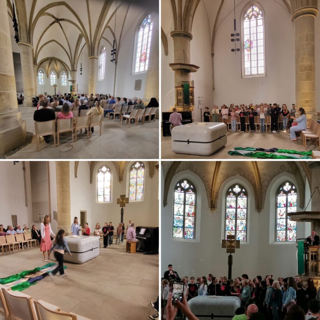 Am 11.Juli 2025 wurden unsere diesjährigen Viertklässler mit einem feierlichen Gottesdienst in der Christuskirche verabschiedet.Unter dem Motto „Von Gott getragen“ feierten die Kinder mit ihren Eltern und Lehrerinnen ihren Abschluss. Musikalisch begleitet wurden sie von Herrn Schauerte.
