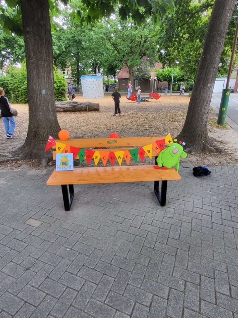 Als Überraschung wartete auf dem Schulhof noch ein ganz besonderes Abschiedsgeschenk der nun ehemaligen Viertklässler. Ein “Freundschaftsbank” für unseren Schulhof. Frau Alfing, Frau Beckemeyer und Frau Twickeler waren sprachlos und begeistert von diesem tollen Geschenk und sagen von ganzem Herzen: Danke!