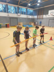 Die Abiturienten im Bereich Sport waren für die Planung und Durchführung der Stationen zuständig. Dabei lag der Schwerpunkt in diesem Jahr im Bereich der Wahrnehmung und der Kooperation der Kinder untereinander.